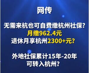 近日,新华网“我为群众办实事”网络互动平台收到网民留言称,在社交平台多次看到关于杭州出台新的社保政策,其中提到,“本人不去杭州也可自费交杭州社保,连缴10年就可落户杭州,享受杭州的退休待遇”。针对此类充满“诱惑性”的杭州养老和社保政策,杭州市人力资源与社会保障局相关负责人回应称,网传所谓“政策”都是不实信息。 ...