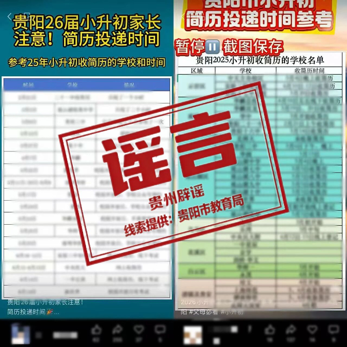 近日,有部分自媒体账号在网络平台发布“贵阳市重点初中投递简历时间”“贵阳初中入学方式”等信息,引发关注。
