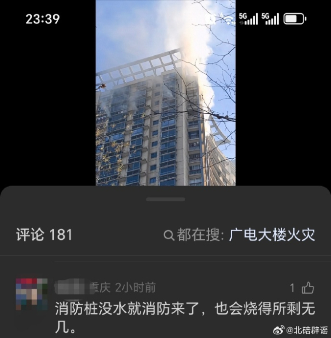 近日,网民在某互联网平台的一则涉重庆市北碚区火情视频评论区留言,称“消防栓没水,就消防队来了,也会烧得所剩无几”,引发关注。经核实,该评论为不实信息。