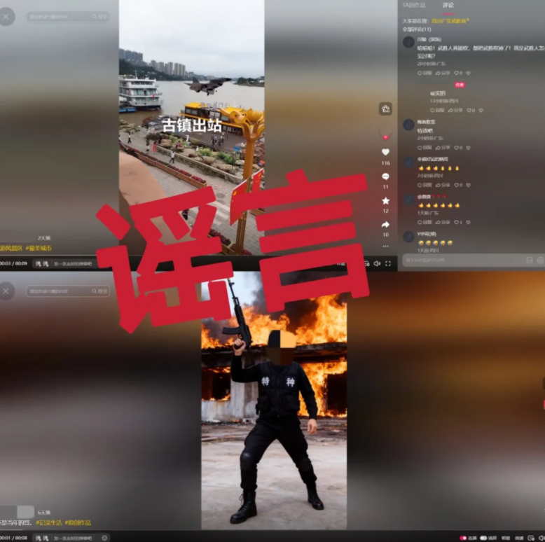 2025年10月,杨某利用AI工具制作“自身着特种兵服装”“大量军机飞越沿口古镇”的虚假视频并在网络平台发布,引发网民关注,扰乱社会公共秩序,造成不良社会影响。广安公安机关已依法对杨某处以行政处罚。